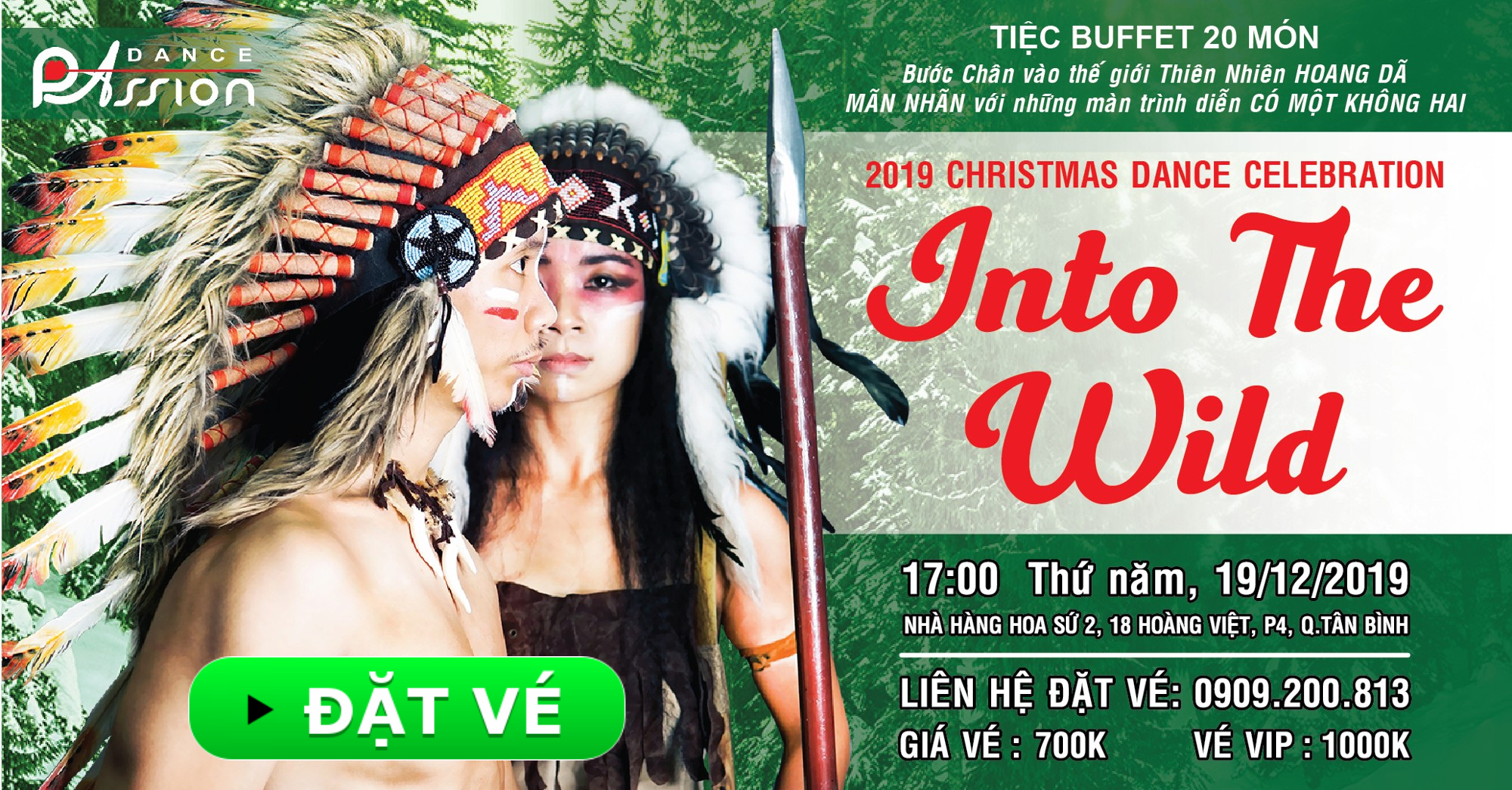 Tiệc Buffet 20 món cùng Sân Chơi Khiêu Vũ TRÁNG LỆ đang chờ đón bạn tại sự kiện Liên Hoan Khiêu Vũ Giáng Sinh 2019, với chủ đề “INTO THE WILD” của Trung tâm khiêu vũ DANCE PASSION
